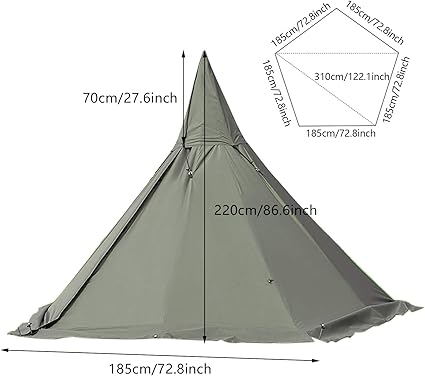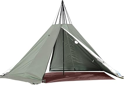 - Stable & Secure in Any Weather: Featuring thick iron support rods, reinforced ground nails, and a snow skirt, this waterproof tent for camping offers excellent stability. The pentagonal structure and flame-retardant chimney opening make it ideal for all seasons.