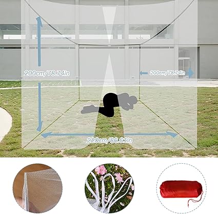 - Spacious Size: With dimensions of about 220x200x200cm/86.61×78.74×78.74inch, the mesh tent provides ample space for various activities. Whether resting, sitting, lying down, or playing games, the large interior space ensures comfort and freedom of movement.