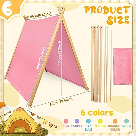 - 6 Set Teepee Tent for Kids: you will receive 6 pack teepee children’s tents, featuring 6 delightful macaron colors (pink, orange, yellow, blue, green, and purple); Ideal for parties, each set includes 24 pine poles and 12 connectors, ensuring a colorful adventure for your child