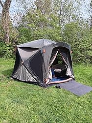 - Ventilated: Huge windows, 5050 no-see-um mesh door, and mesh wall panels maximize airflow to keep you cool and comfortable even in elevated temperatures.