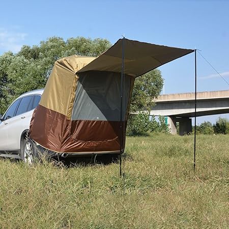 - [Air Flow and Privacy] This Camper Shade Awning Canopy provides extra space and privacy with a large shade area and closed-off private space. It comfortably fits tables, chairs, and up to 5-6 people when fully opened. It is an outdoor camping essential when camping,trip,or simiply enjoying a day in the great outdoors.
