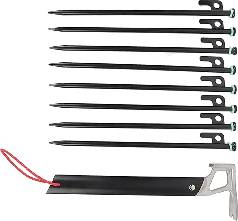 - Luminous : Large flat design, easy to hammer into the ground. The pointed is designed smooth, so you won’t hurt yourself when using it. With 8pcs fluorescent stakes, glowing at night, with anti lost function.