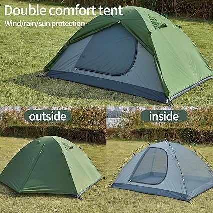 - 【SPACIOUS TENTS FOR 2 PERSONS】 The inner size of the 2-person dome tent is 86.6 x 63 x 43.3 inch( Outer tent size: 102.4 x 90.6x 45.3 inch).The dome tent with space for an air mattress with 2 pelple lying or sitting on the side, plenty of space and large size.
