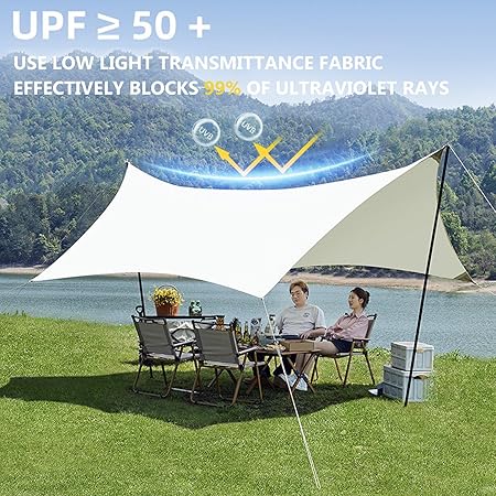 - MULTIFUNCTIONAL SUN SHADE SAIL: Very suitable for camping, hiking, or picnicking, this tarp provides a reliable shade solution, ensuring you stay comfortable on sunny days