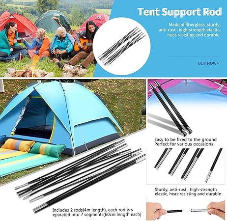 - Multi sections foldable tent pole, includes 2 rods(3.96m length), each rod is separated into 7 segments(60cm length each).