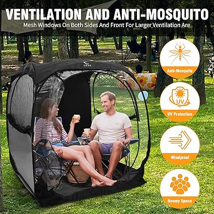 - Spacious and Comfortable – Offers ample space for one or more people, with clear side panels for great visibility and ventilation.