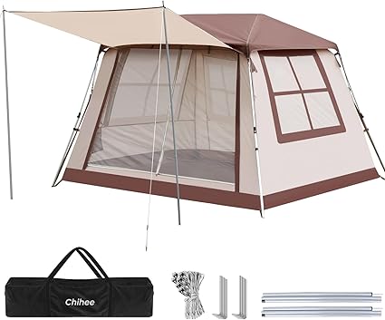 - Effortless Setup and Ease of Handling: Embrace the joy of hassle-free camping with automatic aluminum poles and comprehensive accessories. With 10 sturdy aluminum ground pegs and 6 reinforced guy ropes, anchoring your shelter securely is a breeze.Whether you’re pitching camp in the woods or by the beach, this tent ensures a swift and stress-free setup.The packaging bag features handles, making it easier to carry the tent, especially over longer distances or uneven terrain.