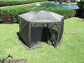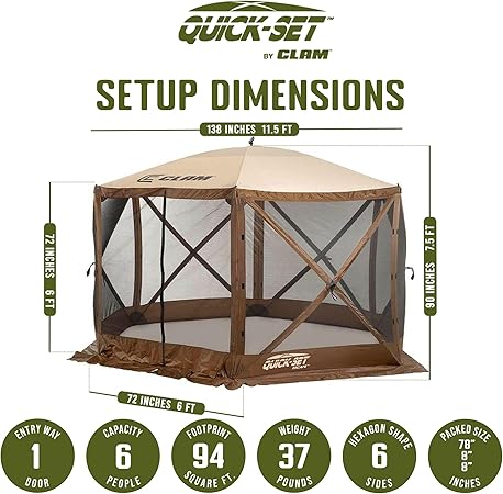 CLAM Pop Up Screen Tent, Outdoor Camping Gazebo Canopy, Escape, 11.5′, Brown