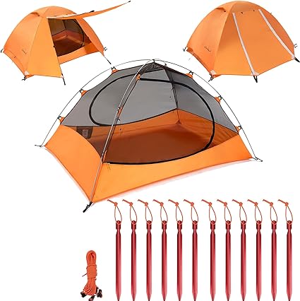 - QUICK SETUP & COMPACT: Freestanding and two Aluminum poles design for lightweight hiking tent’s fast pitching. Easily setup by one person with no experience. This ultralight backpacking tent is compact and portable, also great for Hiking, Bikepacking, Kayaking, Mountaineering, Fishing or Car Camping
