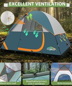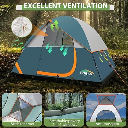 - 【Worry-free use in 3 seasons】Double door rainproof 210D Oxford cloth PU (2000mm waterproof index & inner high-density mesh screen to defend against mosquitoes) and optimized ventilation design keep the inside of the tent dry and comfortable. The waterproof and ventilated anti-smothering design makes the camping tent safe to be used during both the rainy and mosquito seasons