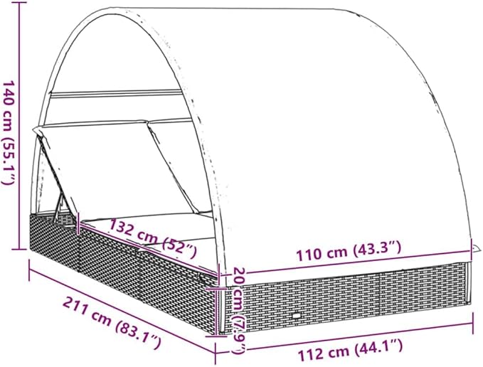- Enjoy Ultimate Relaxation: This two-person sunbed provides ample space for you and a friend to lounge comfortably under its stylish round roof.