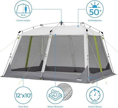 When I set it up for the first time, I couldn’t believe how easy it was! The quality and color pallet is beautiful. Folding it up and putting it back in the carry bag was incredibly easy as well. This was really designed very well. I was particularly pleased that the carry bag is a little bit larger than really needed, so fitting the screen house back in the bag was absolutely no hassle or trouble at all. That has always been my pet peeve: usually the the nylon bags that come with tents, chairs, hammocks etc. etc. are just barley large enough to hold the item, so I spend 10 minutes trying to get the item back in the bag and zipped up. Thank you CORE for making the carry bag a generous size so it is easy to insert and zip the bag. I appreciate the shoulder strap on the bag which makes the whole thing light and easy to carry. I am thrilled with this product.