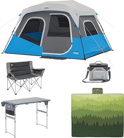 CORE 6 Person Instant Cabin Tent Bundle with Table Loveseat Blanket Cooler