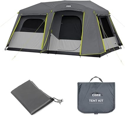 CORE 9 Person Instant Cabin Tent with Rainfly Footprint Tent Kit