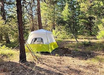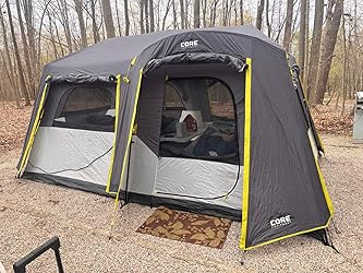 This was my first time ever putting up a tent! It took me about 75 minutes! I have never put one up before! This was really simple & straight forward to do! Watch the videos if you get stuck. ( I’m writing about the 12 person tent. In green/gray). It’s nice looking! I ‘m a 50 something yo mom & Im 5’4 inches tall with no previous experience. So if I can do it anyone can. You do need to have some kind of reasonable strength tho. It took me longer to get the thing out of the shipping box! Lols.. Then there’s another box that says Core, then the zippered bag. Everything came nicely packed with foam padding to protect all the joints and points on the rods. Everything arrived in perfect condition. The tent I received has a footprint or floor that is already attached. It is not removable. All the zippers function perfectly. Just be careful on the bottom of the doors where the rain flap is so it doesn’t get caught. If you’re doing this by yourself follow the instructions to spread the tent out all the way on a flat surface. Then pull the elbows out and hold the last one as you move around to the other side to open the others. (It’s structured something like a mini fold up umbrella . ). Each elbow kind of locks into place if you’re doing it right. When you’ve got all the elbows up put the top rain shield on. Then extend & push each leg up to its full locking position. Alternate sides & anchor each point so the wind doesn’t take it. It’s a huge tent which can fit 2 queen size beds, or a blowup sofa a queen bed and a small table & chairs. I’ll lay a patio mat down to protect the floor & make it more cozy. I love that it has lots of windows with rain flaps that roll down & bottom air vents for cooler air to come in. BUt what’s awesome is that it has a door on each side. A double door & a single door. This tent will be a great addition to our 27 ft airstream & will serve its purpose for a hangout space with the teens & our two 75 lb dogs without getting eaten up by mosquitos. Great job Core! I love it!