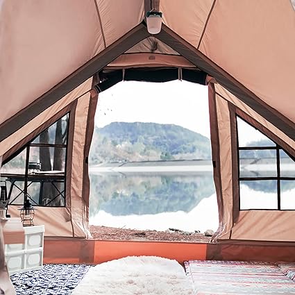 - EASY SETUP AND STORAGE: The Camping tent is design with the air column. just using a pump, adult, children or old person can finish set up glamping tent easily in 10 minutes . there are not pole inside so that don’t worry about that will damage the tent when wrong folded