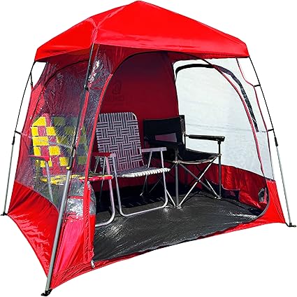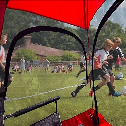 - STORMY WEATHER – CoverU pop up sports tent shelter with clear sides for bad weather days. Lightweight and portable. Stay warm and dry out of the wind and rain in our CoverU sport wind shelter tent, 2 chair sports tent. View sporting events or parades through the clear windows.