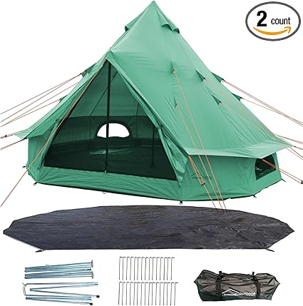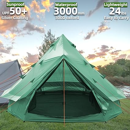 - WATERPROOF, WINDPROOF: Made of waterproof 300D oxford with sun blocking silver coating. The B1 yurt tent designed with extra 19pcs wind guylines to enhance stability. With excellent wind and rain resistance, it’s your reliable shelter in weather.