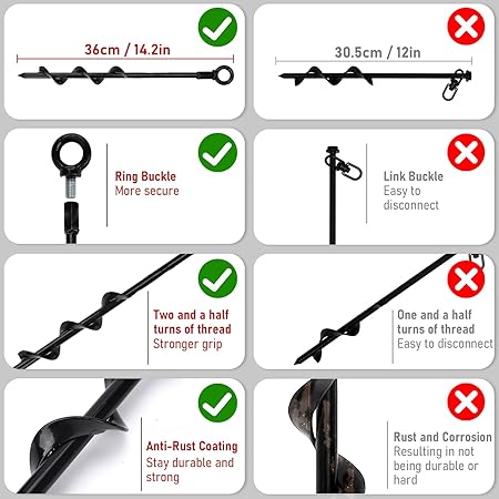 The only minor note is that it can take a bit of work to get into extremely hard ground, but overall, they perform very well and are a great investment for outdoor stability. I happily give these anchors 4.5 stars!