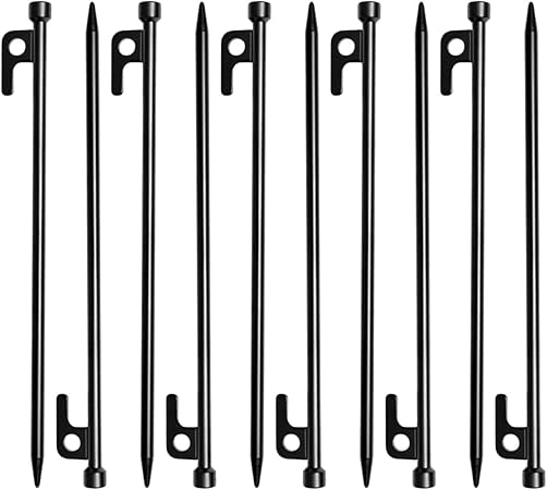 - Camping needs:extra length and wide tent stakes with sharp and thickened end, shows great ability in resistance and stress, strong holding power for sand and snow ground, you could also use it with a tent,tent spikes metal