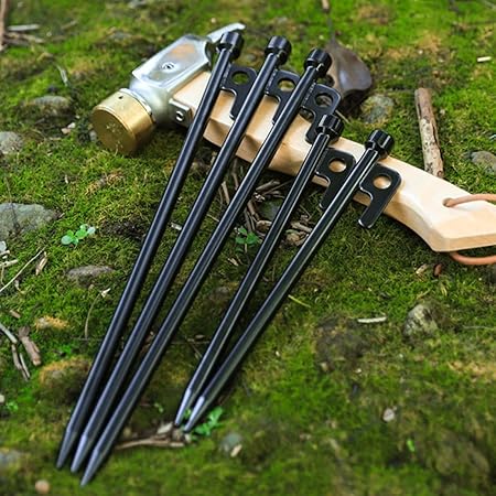 - Metal tent stakes:the smooth design of the tip part is not easy to hurt your hands and easy to plunge into the soil,outdoor tent pegs