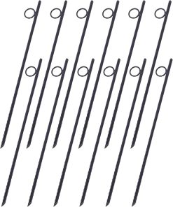 - Use: Featuring a 1″ loop on each stake, easily secure ropes and straps for tents, tarps, and canopies at any campsite or garden.