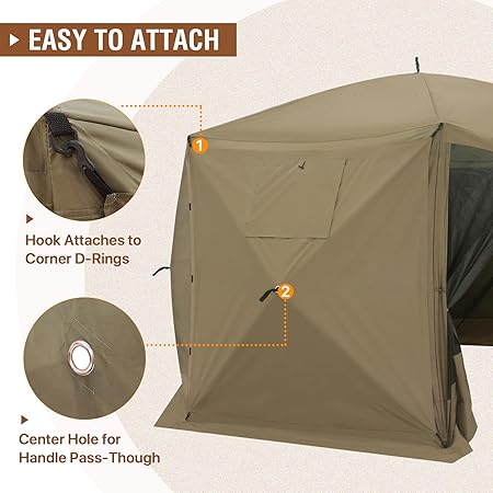 - EASY TO ATTACH: The side walls come with strong hooks and Velcro, you can easily attach to Eagle Peak 6-sided hub tent, find ASIN: B09BCHT7NW / B09BCJS2BF