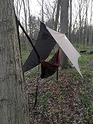 Ok so. Waterproof yes. Durable eh. Lightweight yes. Easy to repack not really but I’ve had worse products. So the number one problem I have with this product is that the ropes that you tie it down with especially the two that go tree to tree, are very short especially compared to the hammock straps. No where near long enough and if you’re planning on using on large trees. Don’t bother. Small trees that are close together yeah sure. But other than that seems like a pretty decent product. You’ll just have to be smart about where exactly you’re hanging it. Or you could swap the rope that comes with it for some parachord but for the money you should t have to do that.