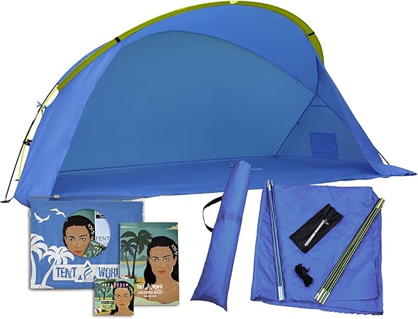- TAKE PART IN OUTDOOR FUN FOR YEARS AND YEARS TO COME – DURABLE CONSTRUCTION: The Venus Beach Tent by Tent World features a flexible frame design making it less prone to breakage even after years of use. Our 30 UPF sun protective fabric is thick and durable, and will withstand water, high winds, and kids who like to play rough! Each pole is light weight, yet durable, separating into smaller segments for quick assembly and easy storage. No detail has been overlooked in making the Venus outstanding