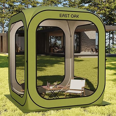 - 𝗣𝗼𝗽-𝘂𝗽 𝗳𝗼𝗿 𝗘𝗮𝘀𝘆 𝗦𝗲𝘁 𝘂𝗽 𝗮𝗻𝗱 𝗦𝘁𝗼𝗿𝗮𝗴𝗲: Suitable for 2-3 people, EAST OAK portable screen house features a convenient pop-up design that allows for easy installation by a single person in under one minute. The tent is designed to be easily folded and has a convenient carrying bag. Packed away in its included carry case, its dimensions measure a coimpact 31.5×3.2×31.5 inches