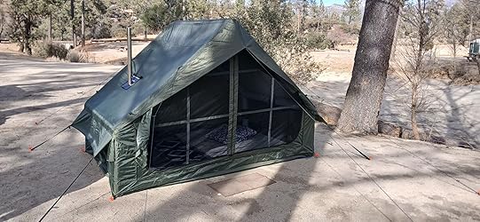 - 【More Details】The 1 door and 2 side windows are designed with two layers, one layer is airtight and one layer is mesh. The door and windows can be rolled up so you can choose to open them or not depending on your need. Mesh windows and door can enhance the breathability and mosquito prevention. Not only protect privacy but also keep you cool and comfortable on hot summer days. A stove jack allows you to use the stove in the tent. The tent has 1 roof vent for ventilation.