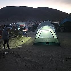 Nice tent ! Wasn’t expecting it to be as nice as it is for the money. Sets up fast. Has a extra layer with zippers on windows and both doors for rain. Would definitely buy again.