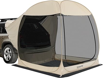 - VERSATILE USAGE: EighteenTek camping SUV trunk tent creates an instant shelter for rest when travelling. Disconnected with the vehicle, it is also used as a stand-alone screen house tent, just like still in your garden, or backyard during outdoor travel. Meet your versatile demands.