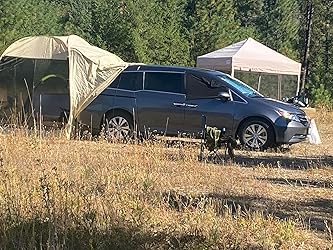 Attach to our dodge caravan. Allows us to camp in the van without being overly hot or buggy. Super quick set up.