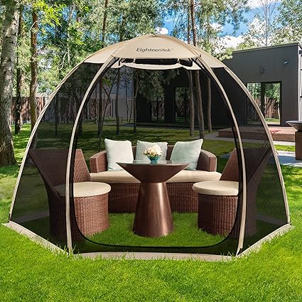 - 𝐏𝐎𝐏 𝐔𝐏 & 𝐄𝐀𝐒𝐘 𝐓𝐀𝐊𝐄 𝐃𝐎𝐖𝐍: EighteenTek screen tent pop up automatically, no assembly needed, set up in a second, no need to struggle with the heavy construction. The innovative folding method makes it easy to fold down, and put it into a compact carry bag size 45.7”x45.7”x1.6”H, convenient for you to carry and store.