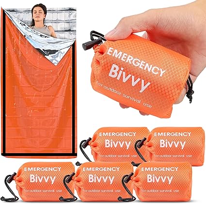 - 【Essential】Loss of body heat can be a major hazard. Deecam Emergency Survival Bivy Sack is designed to reflect 95% of heat to prevent heat loss. Made from high quality Mylar fabric, durable, waterproof and windproof, making it suitable for a range of extreme weather conditions. In addition, the three reinforced sides with high quality tape ensure both warmth and durability. The double-sided orange and silver colors make it easy to identify in emergency situations, helping to speed up rescue.