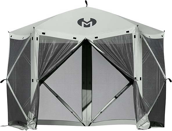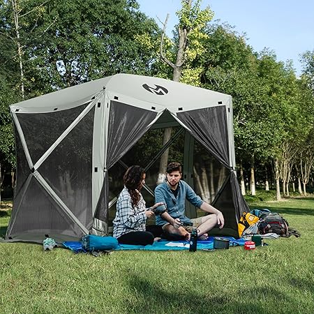 - [Multi Specification & Multi Choice]: The clam tent has kinds of sizes for your choice to accommodate more people. You can set camping table and camping chair or to cooking dinner or just sitting there. The centra height is up to 9’ (4 pcs side) or 8.2’ (6 pcs side). You will not feel pressured when standing