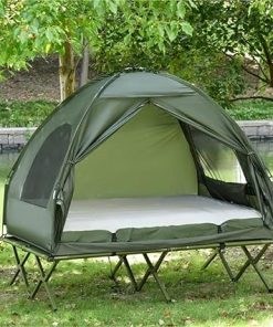 Experience outdoor comfort! Our Foldable Camping Tent with Double Cot & Air Mattress offers waterproof UV protection. Get yours today for the ultimate adventure!