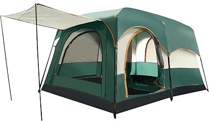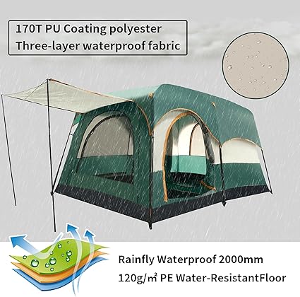 - 【large space & ventilation】 interior accommodates 6-8 people,Tent size:150×102.36×72.83inches Standing and stretching inside easy.Extended size of Canopy:63×78.74inches increasing space.it has curtain that can divided to 2rooms,increase privacy.It also has 3 mesh doors 3 mesh windows,the skylight is use full mesh,that for good ventilation and against mosquito
