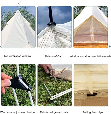 - 【Features】The bell tent has 2 layered windows and 2 layered door; canvas cover that could be rolled up and additional mesh to keep the critters out yet allowing for the cool breeze to come in for a calm long night sleep.
