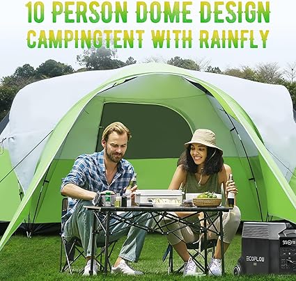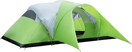 - Spacious Design: Roomy 8-10 person tent perfect for family camping, hiking and outdoor adventures.Our large tent comfortably sleeps 8-10 people in a spacious 18 x 9.8 feet. Overhead fiberglass poles give the tent an impressive 78-inch center height. It’s ideal for family camping trips, providing plenty of room for everyone to stretch out and relax.