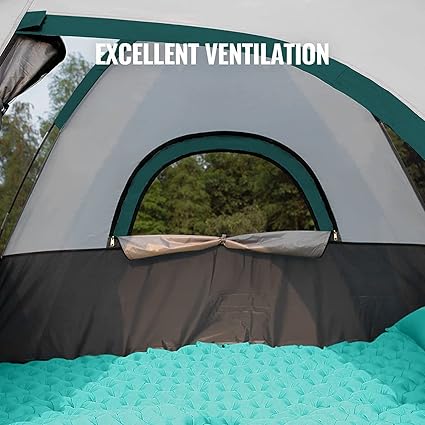 - 【Excellent Ventilation and Condensation Prevention】: Our camping tent has a double layer two-way zipper door and window( inner mesh layer and the outer polyester layer) and large side meshes. Provide greater ventilation, air circulation and limit natural condensation. Reduce the heat from the sun and prevent mosquitoes from entering.