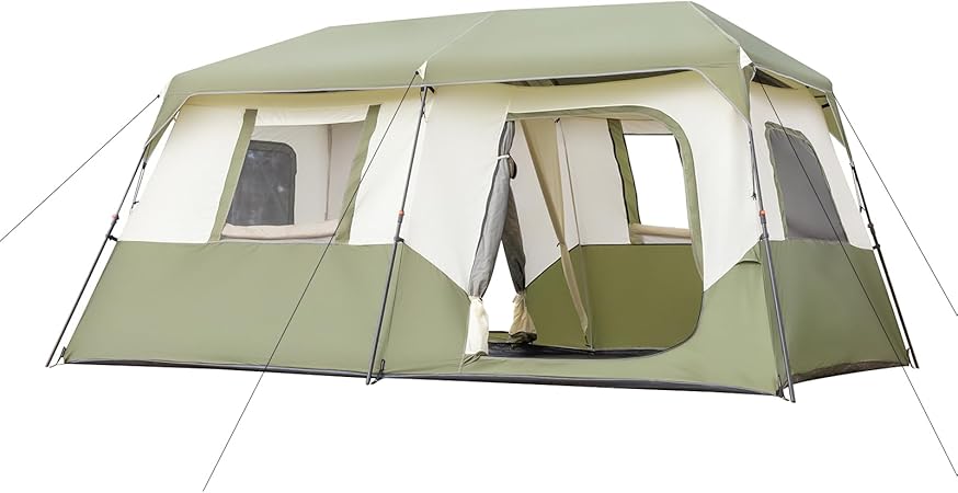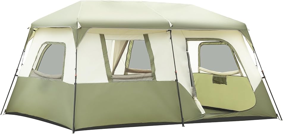 - Roomy for family of 8 Person – Liamoy camping tent is one of the perfect family tents you have ever seen. The size is 13*9*6(H)ft. 2 queen air mattresses or 8 sleeping bags are well fit in the tent. Ideal for family car camping or camping site