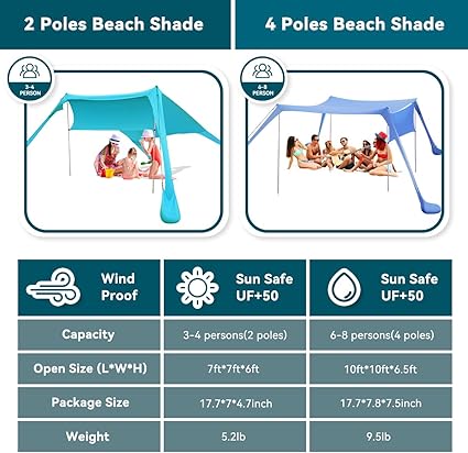 FBSPORT 10x10ft Beach Tent with UPF50+ Sun Shade for Outdoor Fun