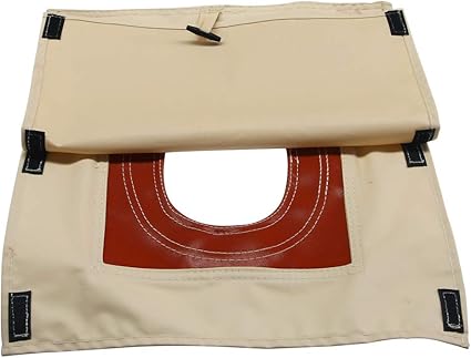 - Heat Resistant – It contains Fiberglass fire resistant fabric sheet, same as stove hole accessory of our 4-Season cotton bell tent.