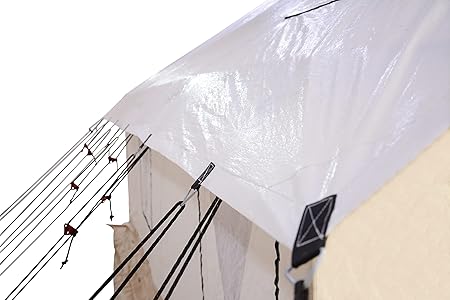 Flysheet for Alpha Wall Tent, Guy Ropes, D-Ring, Metal Runner & Stakes Included for Hunting, Family Camping & Outdoor Activities (14’x16′, PE)