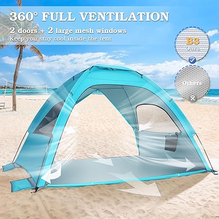 - UV & Water Protection: Designed with anti-UV, water-resistant fabric (UPF 50+), this beach tent blocks harmful rays and eliminates direct sunlight for superior sun safety.