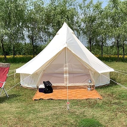 - 【HIGH QUALITY】: Luxury spire tent with heavy duty zipped in waterproof, breathable fabric, reinforced double stitched seamed lining. This camping tent is sturdy enough to withstands potential heavy wind,rain,or even snow. Cotton is treated with UV, mildew, rot & water repellent.