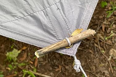 this is a pretty good tarp for the price. lightweight, seems to be pretty high quality. perfectly fits the foxelli hammock, or any hammock that’s a little less than nine feet long. i wish the stakes it came with were the screw-in type, but they’re perfectly suitable for most purposes.