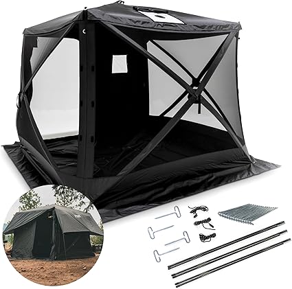 - WARM UP AND COOK UP your favorite meal inside your extra large camping tent, knowing the stove vent will keep the heat under control. If spills happen, just remove the floor for quick and effortless cleaning, ensuring a hygienic and clean pop up camping tent